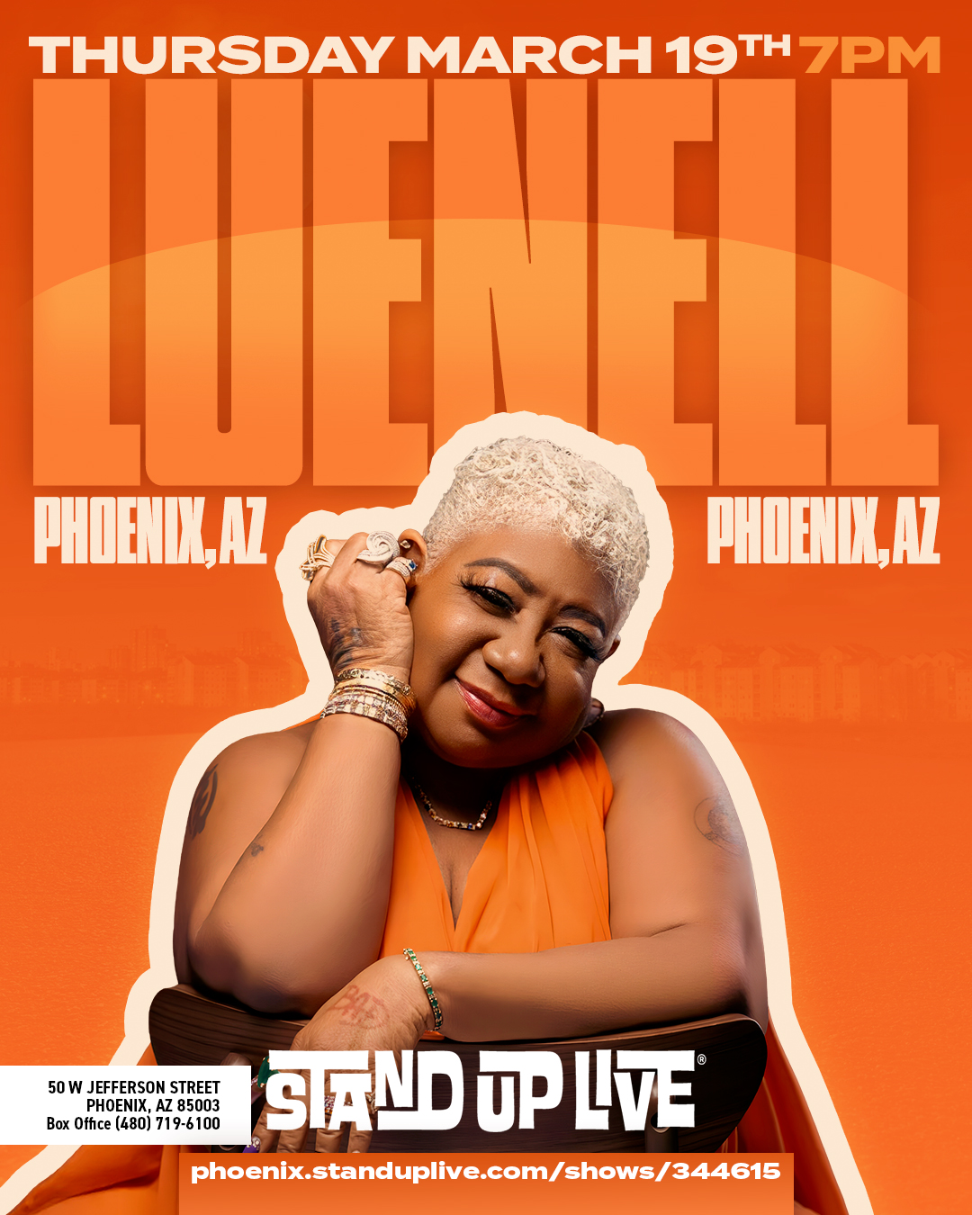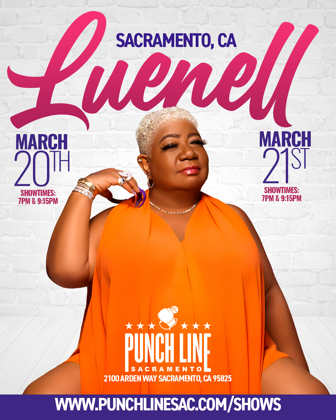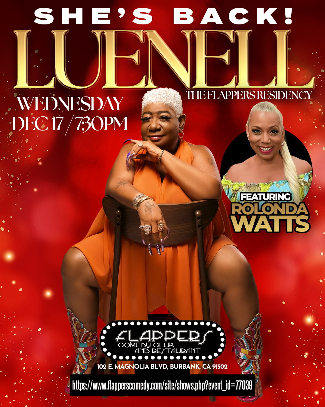 Luenell is the “Original Bad Girl of Comedy.” She may be small in stature, but she more than makes up for it with her big personality, booming voice and infectious laughter. Born in Tollette, Arkansas and raised in Oakland, Calif., Luenell, has been thrilling audiences with her brand of comedy for more than 30 years..”
