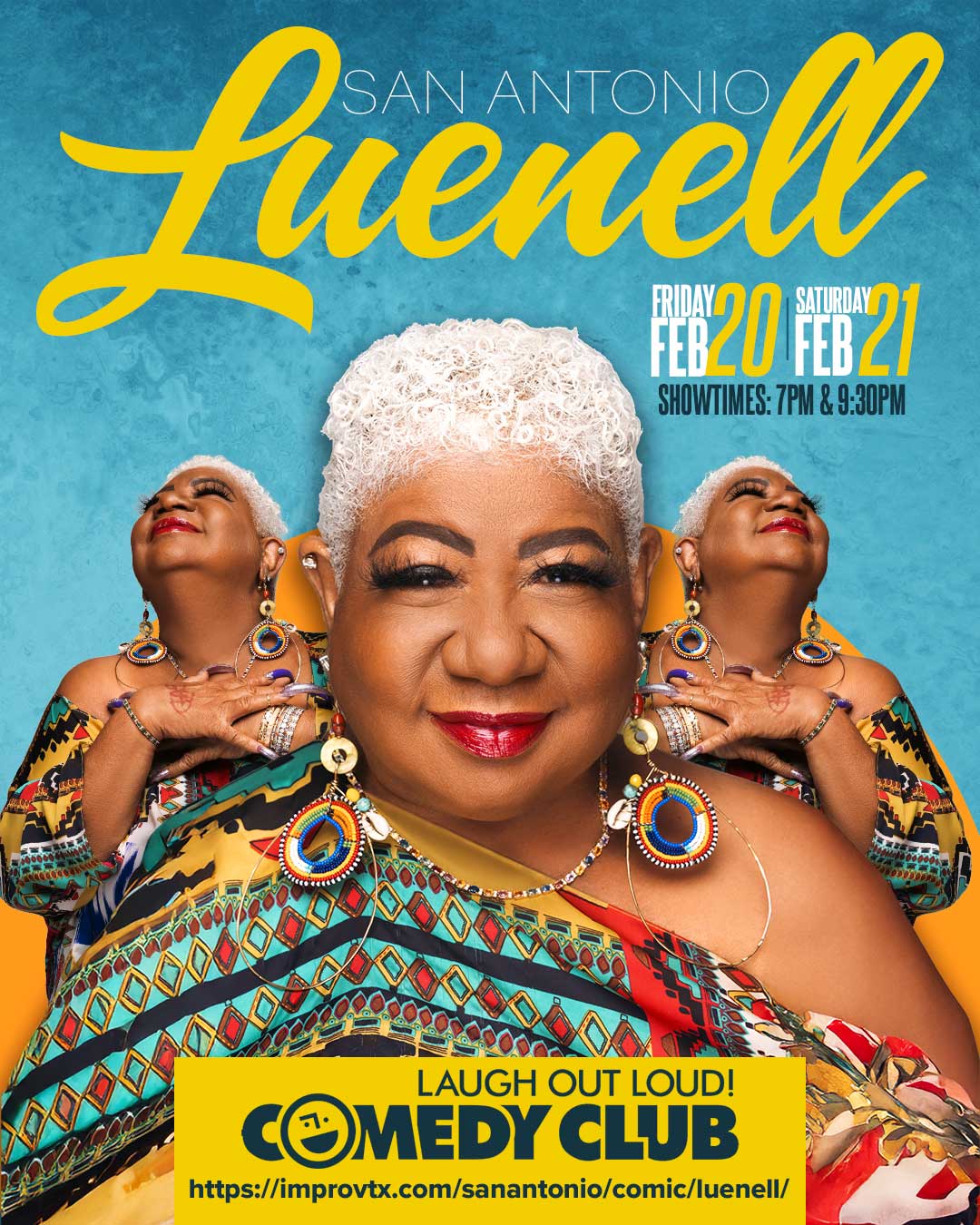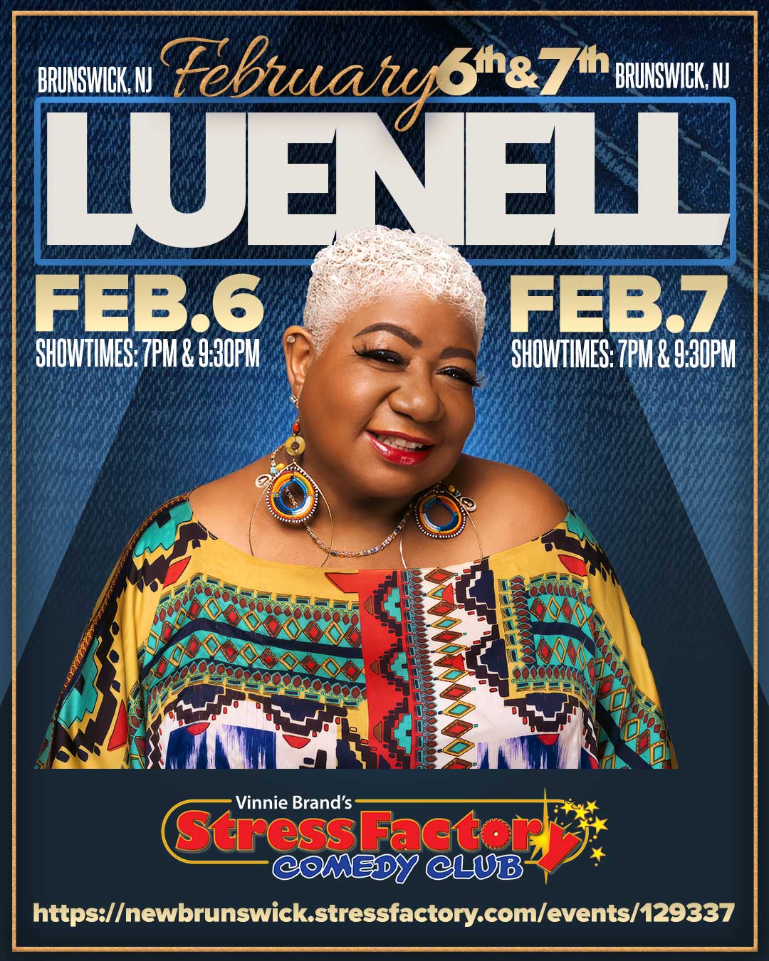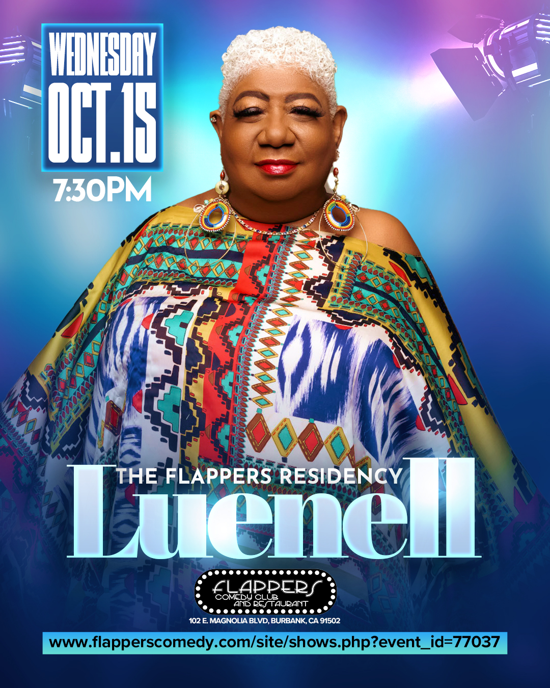 Luenell is the “Original Bad Girl of Comedy.” She may be small in stature, but she more than makes up for it with her big personality, booming voice and infectious laughter. Born in Tollette, Arkansas and raised in Oakland, Calif., Luenell, has been thrilling audiences with her brand of comedy for more than 30 years..”